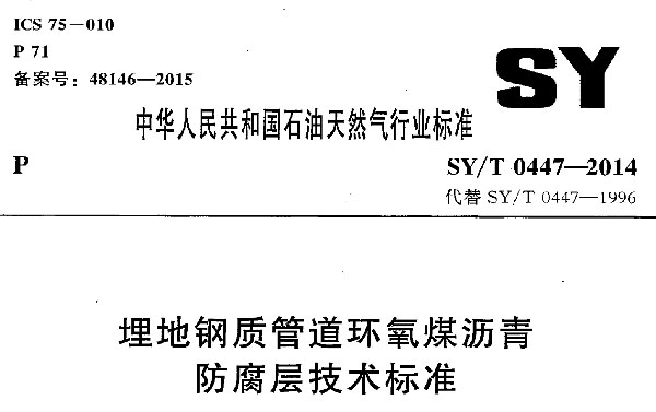 1. SY/T 0447-2018《埋地鋼質管道環氧煤瀝青防腐層技術標準》主要內容包括: